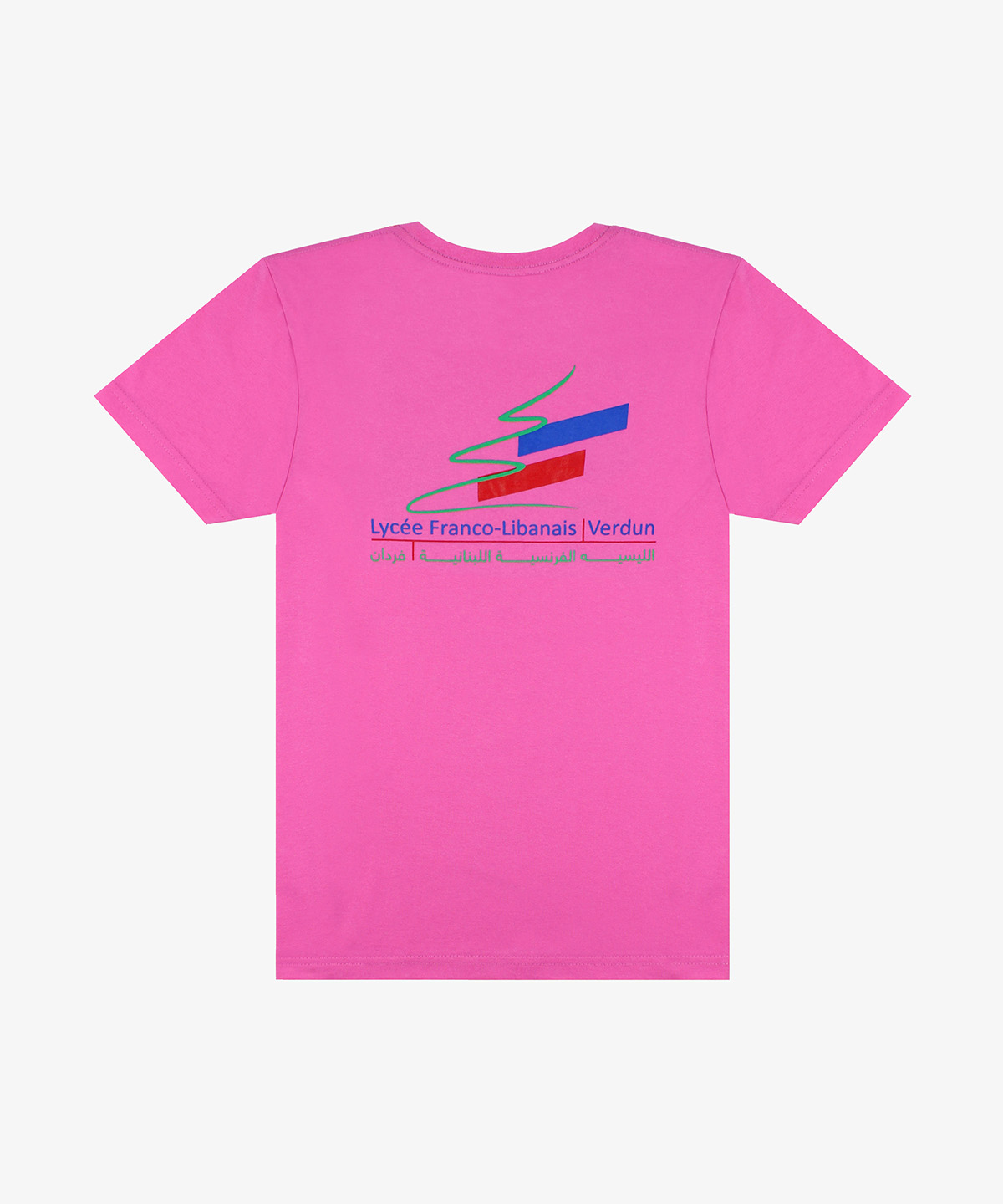 Ready made heavy cotton t-shirts in different colors screen printed on front chest and back for a Spanish NGO operating in Lebanon.