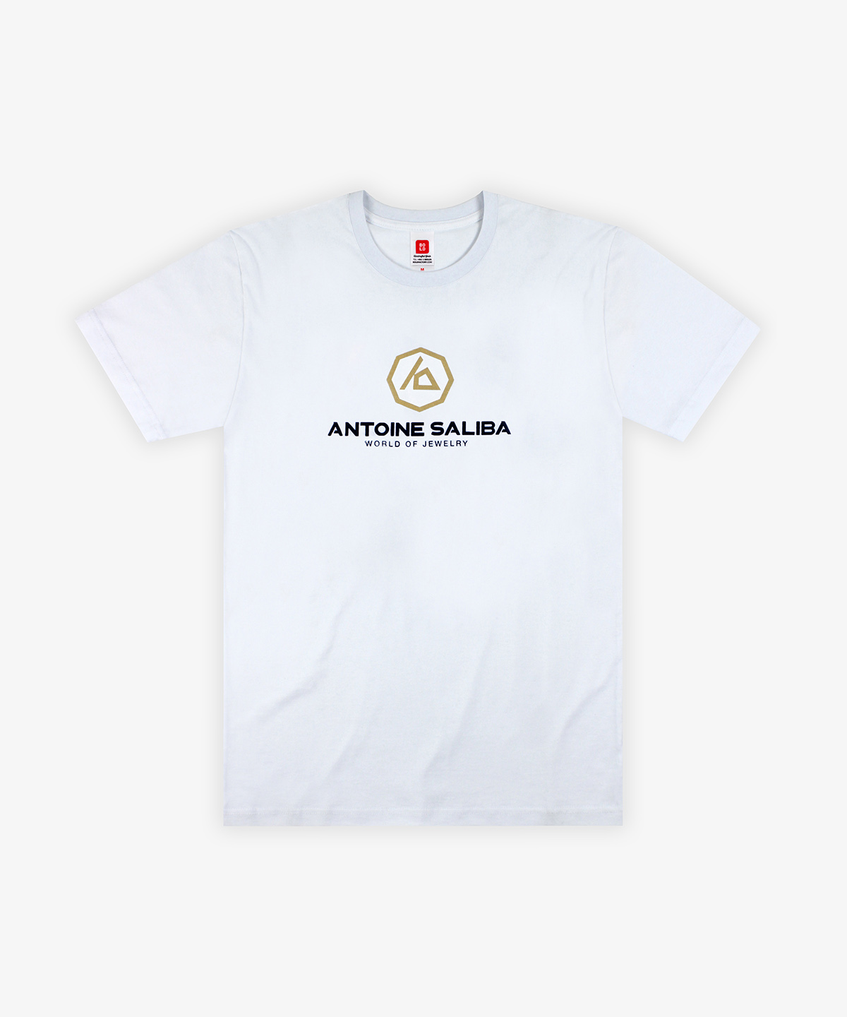 Ready made 100% heavy cotton t-shirts for Antoine Saliba Jewelry, screen printed on chest and back using high quality durable Gold / Black screen printing plastisol inks.